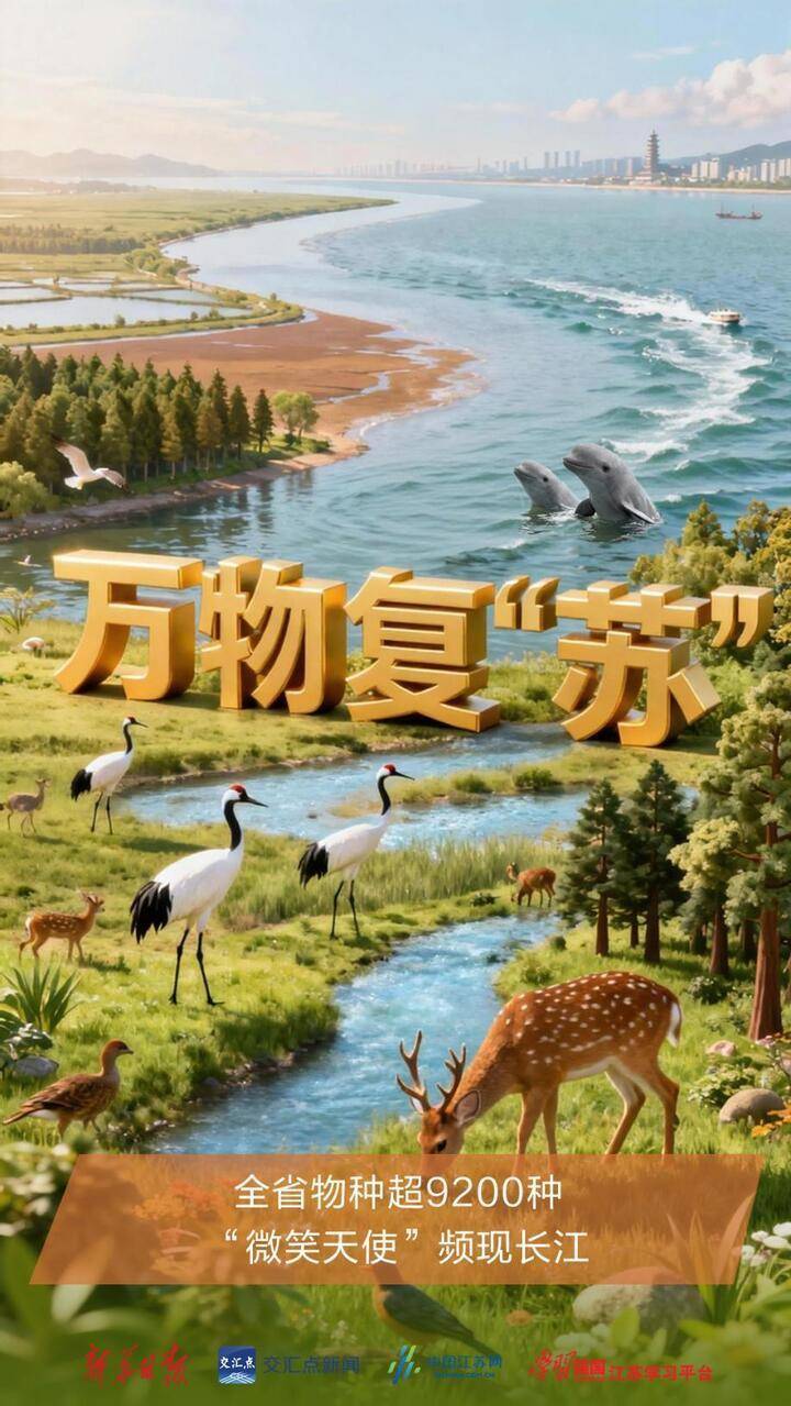 2025年,江苏省率先完成以县域为单元的生物多样性本底调查,全省共记录物种9266种,较2024年公布数据增加424种。调查期间发现近30种江苏新记录物种,如苏州市吴中区的毛脉槭、南通市经开区的海边月见草、无锡宜兴市的凹耳臭蛙、南京市江宁区的亚洲长翼蝠等。越来越多野生动植物在江苏“安家落户”,反映出江苏生态环境质量持续向好。一批珍稀濒危物种种群数量稳定增长、分布范围扩大,如“鸟中国宝”东方白鹳从扬州、宿迁、盐城等局部区域扩展至全省13个设区市,“微笑天使”长江江豚的活动范围已覆盖整个长江江苏段……万物复“苏”正从愿景变为现实。2025年,省人大常委会正式颁布施行《江苏省生物多样性保护条例》,成为全国第三部生物多样性保护地方性法规,推动全省生物多样性保护步入法治化轨道。